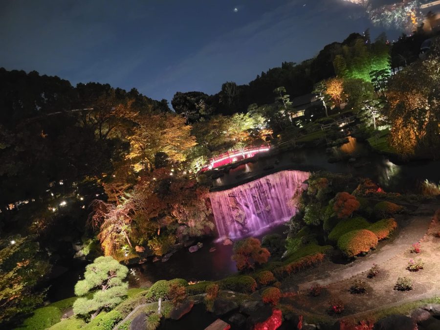 敷地内にある日本庭園がライトアップされてて紅葉が映えてとても綺麗でした✨🍁✨