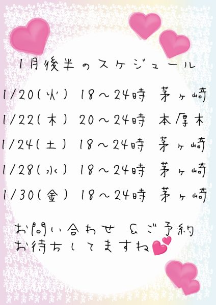 | 2026/01/22(木) | 本厚木 20:00~24:00 |