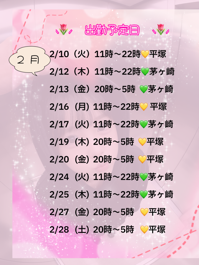 2月末までの出勤日程が決まりました🌷