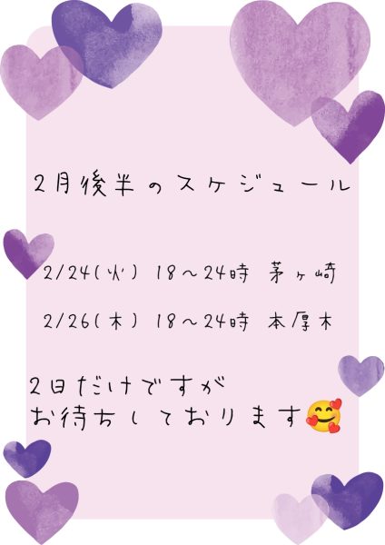 | 2026/02/26(木) | 本厚木 18:00~24:00 |