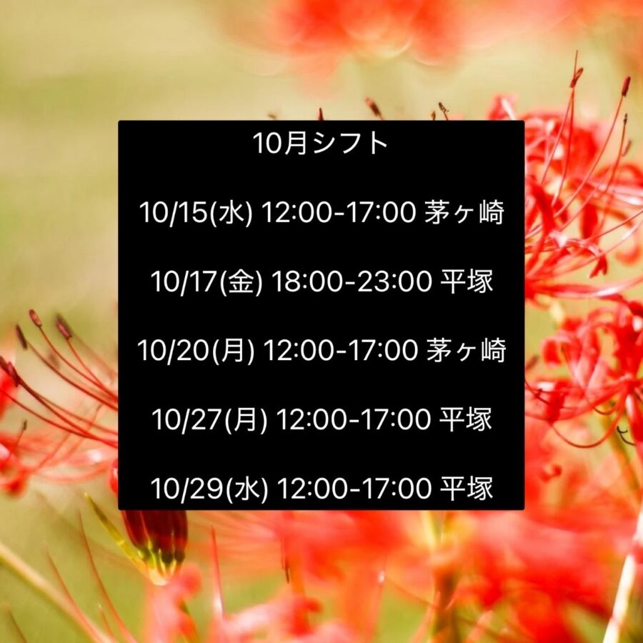 10月残りのシフト予定です🗓️